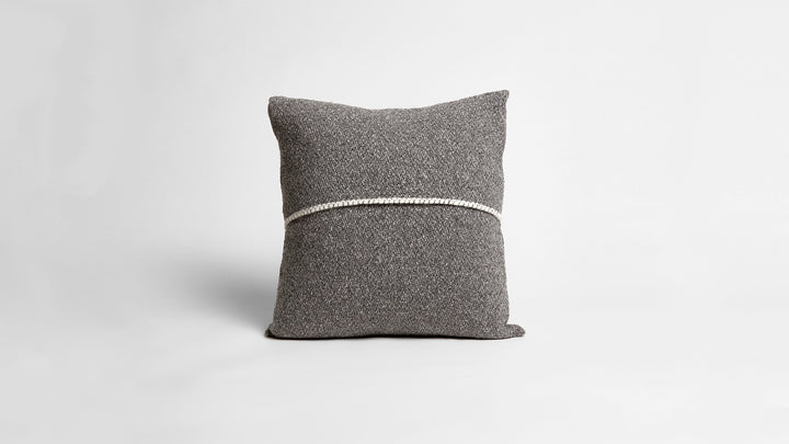 Handwoven ecological merino wool feels thick and soft. Neutral, muted brown is flecked with grey and brown from the natural dyeing process.