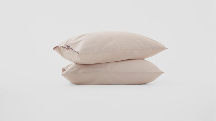 We’ve tailored a contrast, scalloped edge detail to our 375 thread count cotton sheeting. Our fabric is milled in Italy with a smooth sateen weave for a silkier feel. We make each piece by hand in Melbourne.