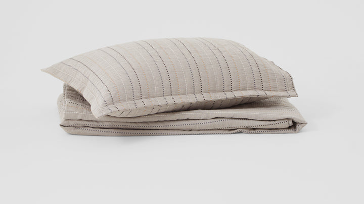 A neutral base is the perfect background for the tonal running stitch detail. Crafted from super soft cotton, this versatile piece will add cosy comfort to any bedroom setting.