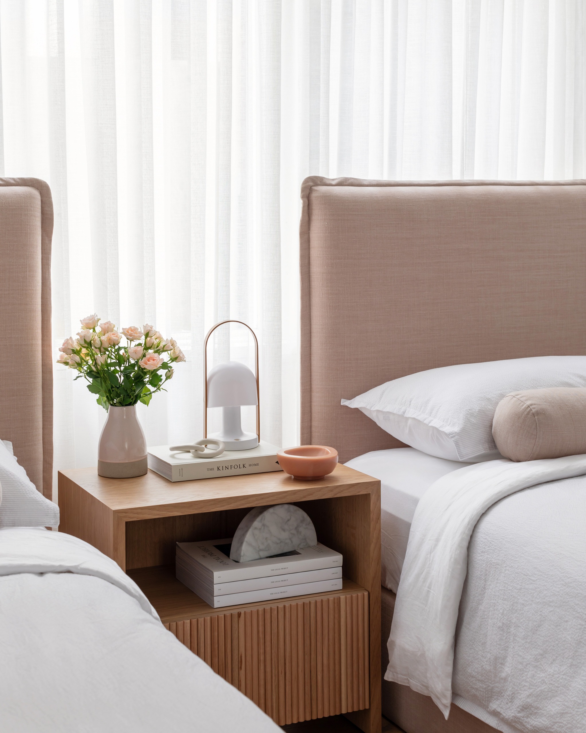 A shared room with layers of cosy neutrals and classic furniture pieces. Suited for siblings or to have a spare bed for sleepovers.