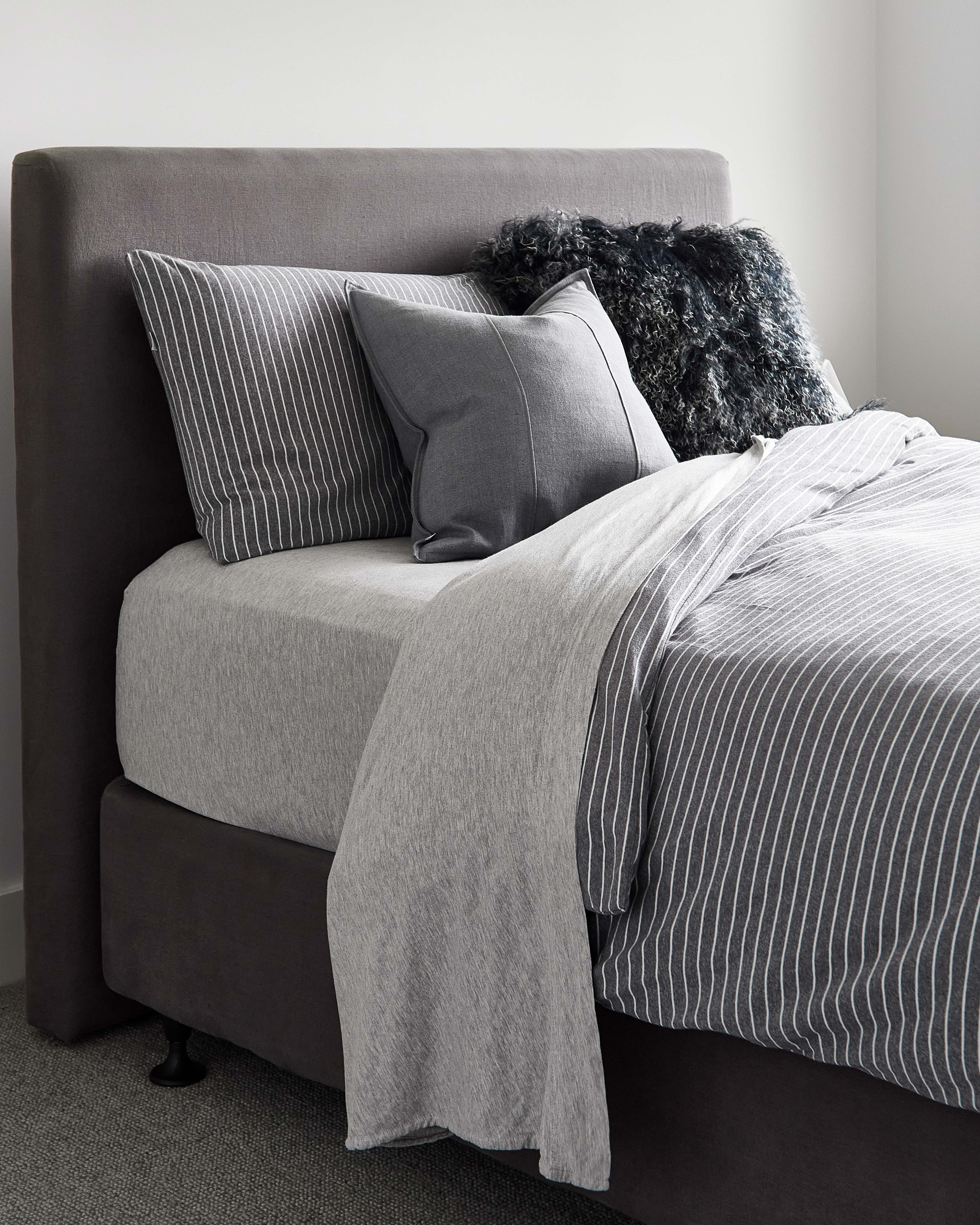 Styled: Lenox quilt cover, Studio jersey sheeting, Mineral throw & Nordic cushion.