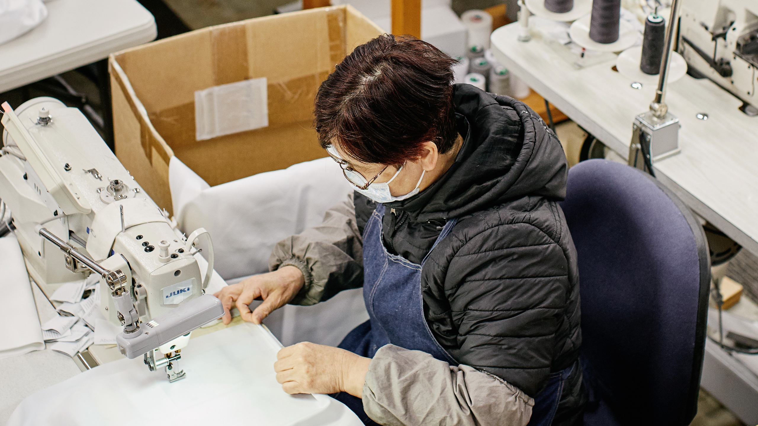 Shown here is Lee, one of our head sewers, who has worked with Abode Living for over 10 years.