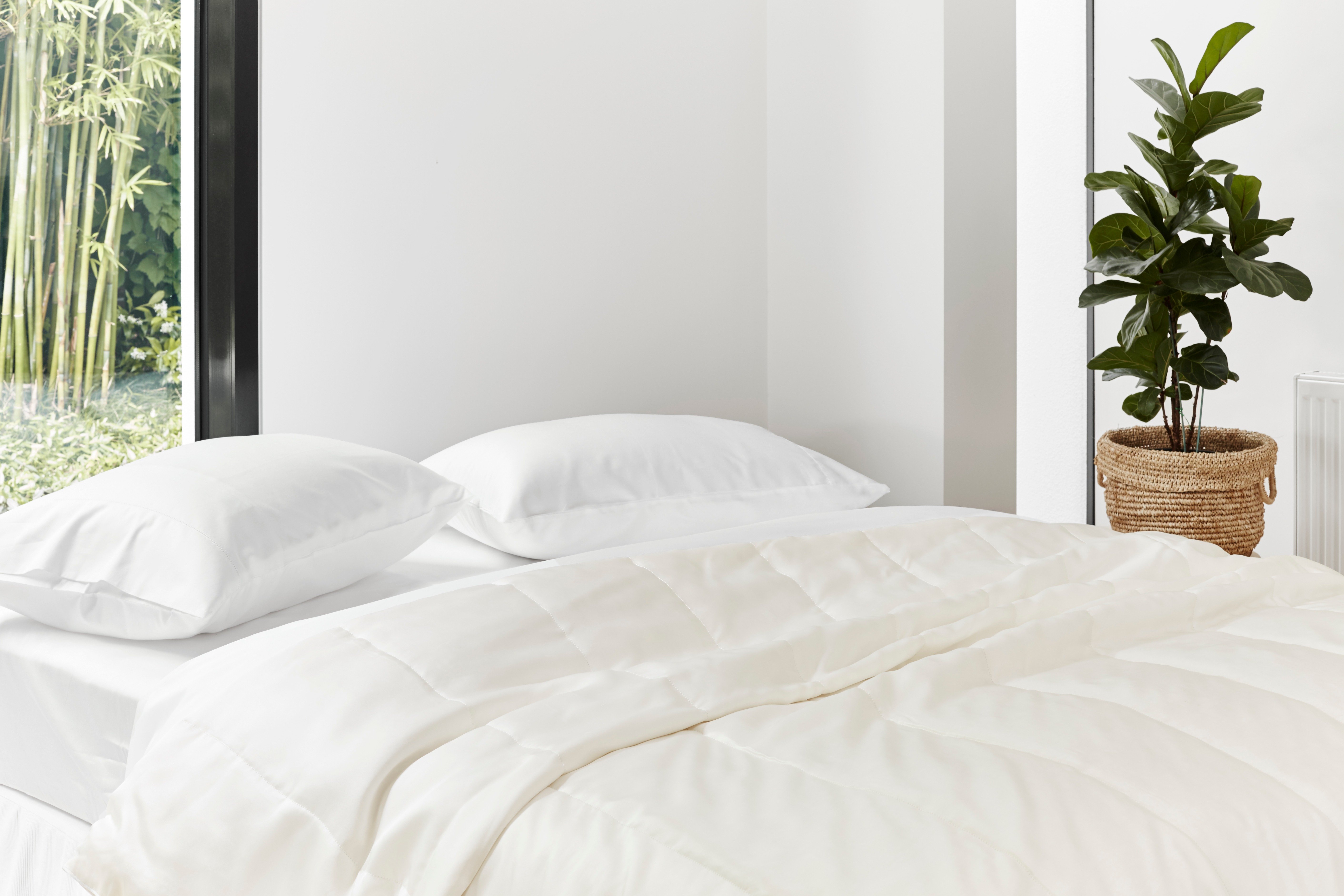 Bed linen should be suited to the season and your sleep style. Belgian linen makes a great all-rounder due to its ability to cool and warm, as well as wick moisture. Cool and crisp, cotton is a fine choice for the warmer months. While silk makes for a luxurious quilt, enveloping you in a soft, gentle drape.