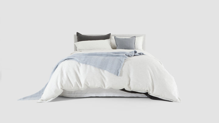 Luxurious linen in a delicate soft grey. Thoughtful, textured running stitch adds tactile detail to the weave. For complete and utter ease, Rumi looks best without ironing.