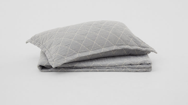 Soft vintage-washed cotton is woven and quilted in Portugal producing a lovely light-weight coverlet of 375 gr/m2 weight. The reversible design provides versatility and interest. Perfect as a light layer in summer, or an additional layer in winter.